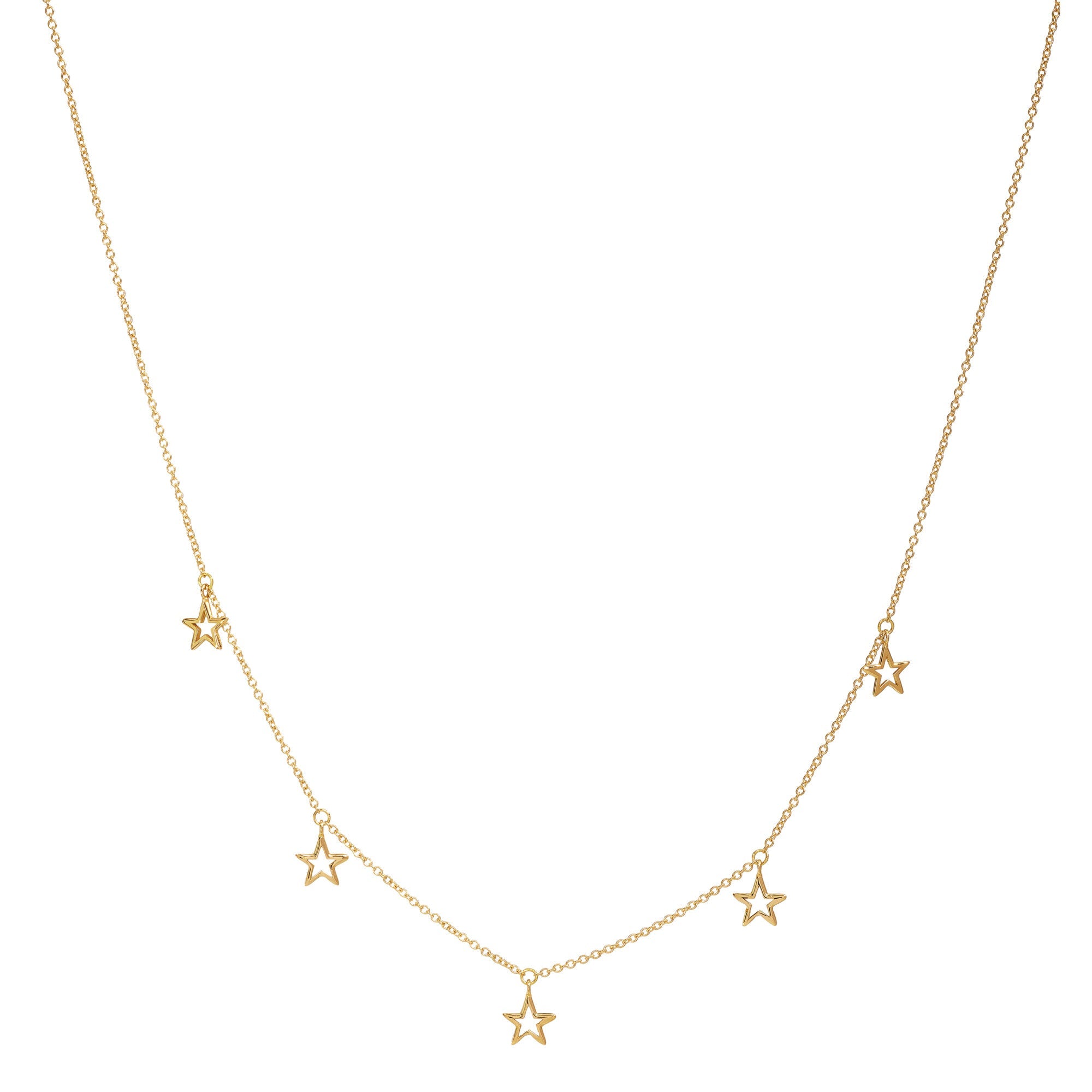 Cielo è la collezione che Marco Gerbella dedica alla forme di morbide nuvole bianche e alla luminosità degli astri. Questa Necklace realizzata in catena d'oro 18 kt presenta cinque piccole stelle pendenti.