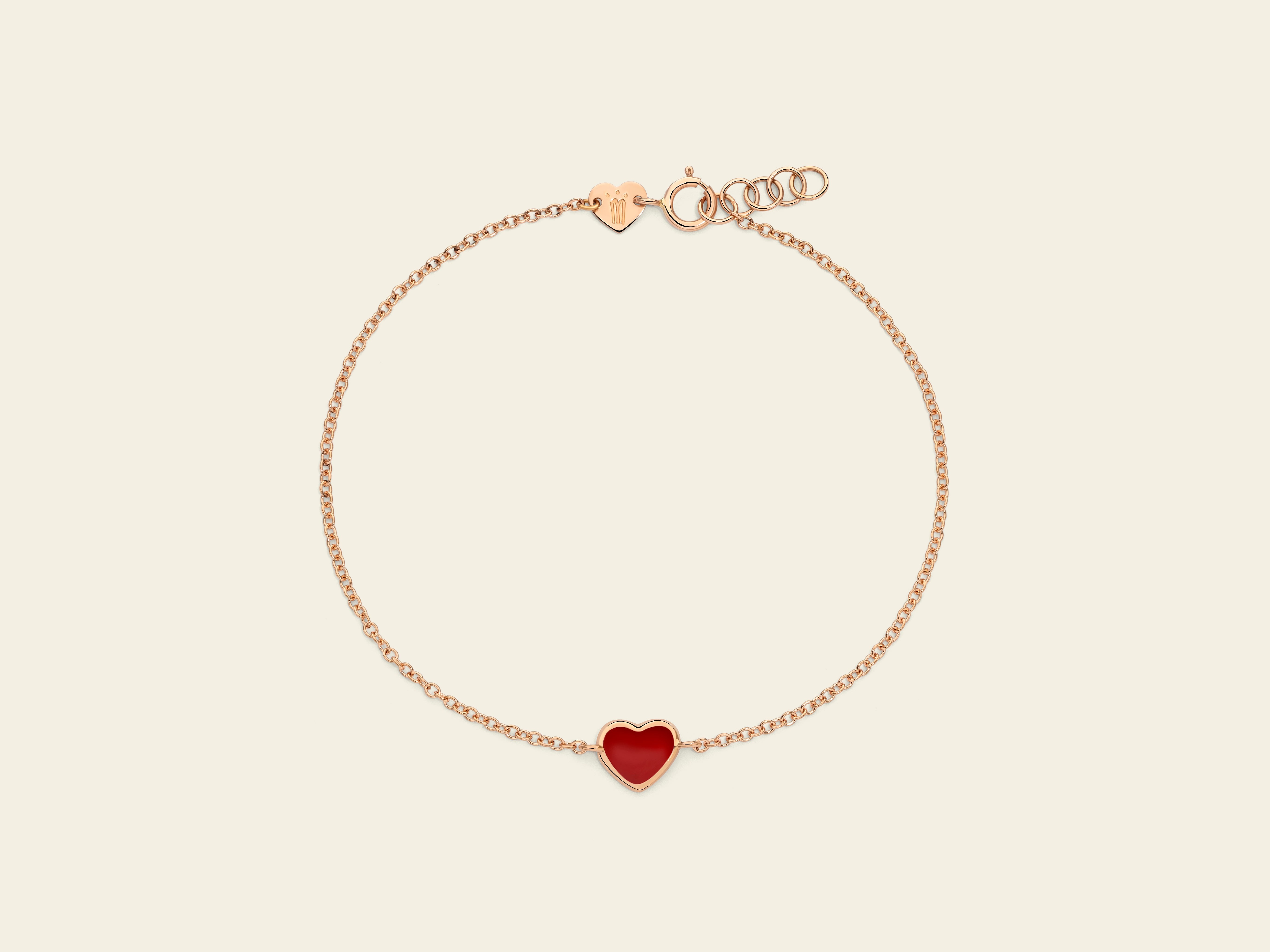 Follow the beat of your Heart and fall in love with the jewels of the Cuori Collection every day. The Bracelet made of 18 kt gold chain features a delicate Red enameled heart in the center which defines its romantic attitude. Wear it alone or combined with the other jewels from the Cuore collection.