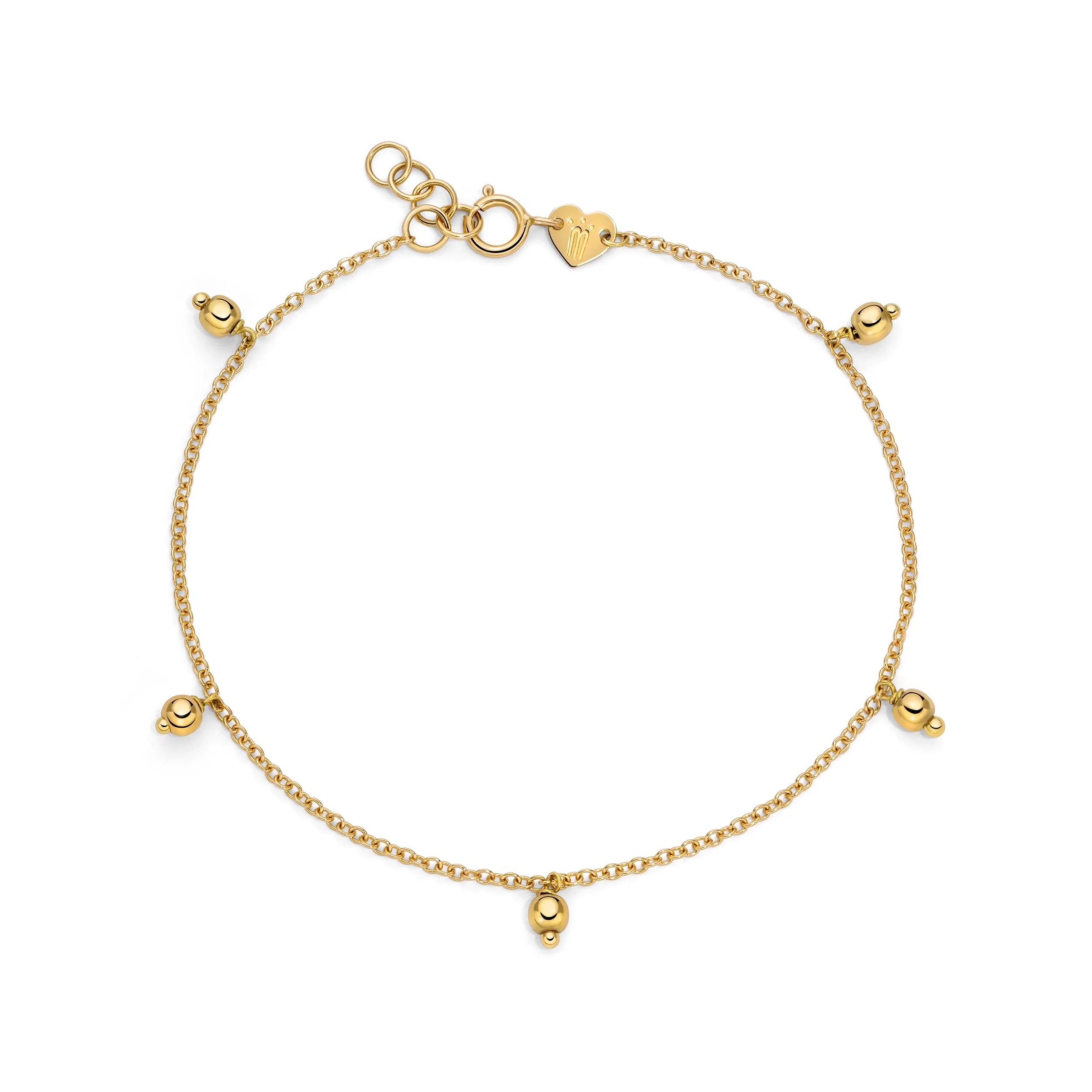 The Sfere Collection celebrates minimalism in a contemporary key. For all your occasions that require a sophisticated jewel, choose the 18 kt yellow gold chain bracelet. The small hanging spheres placed on the jewel give dynamism and audacity to this precious creation. Wear it alone or combined with other jewels from the Sfere collection.