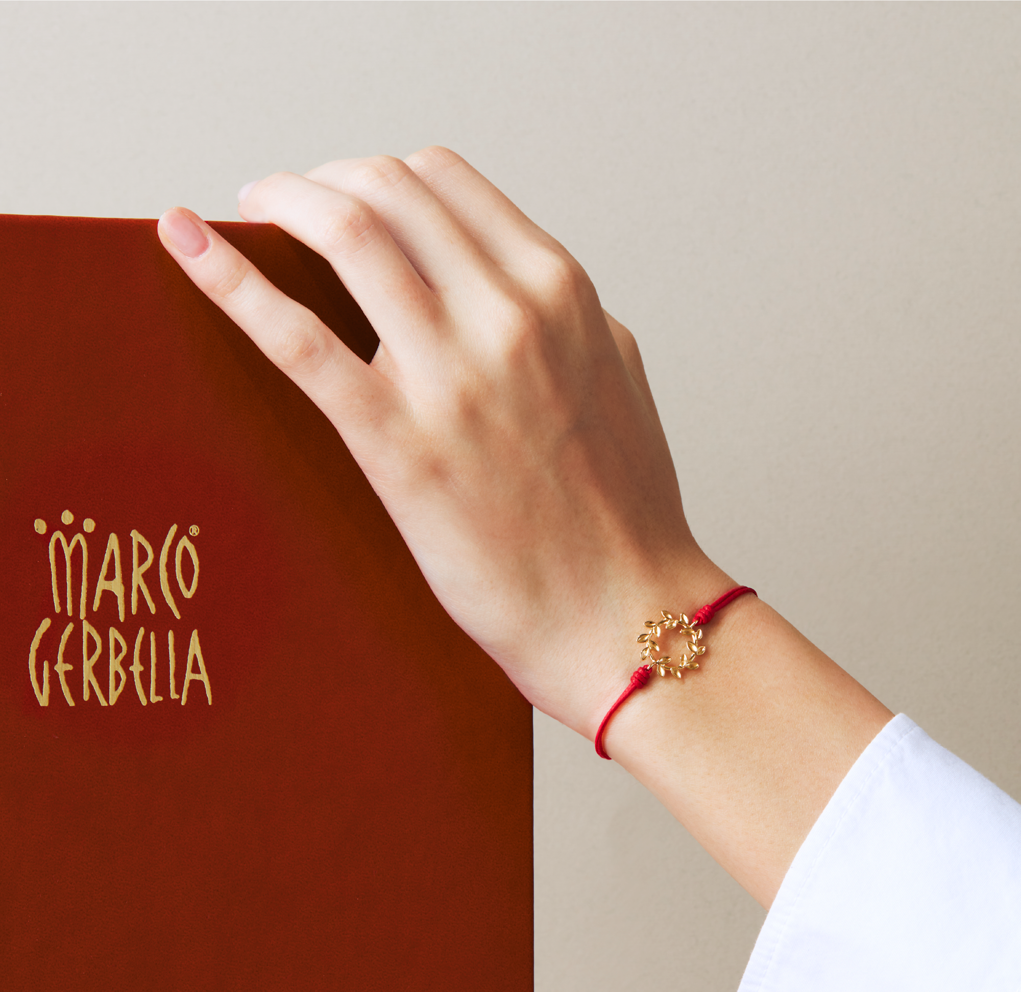 Refined and bucolic, the Flora collection celebrates the vitality of nature by interpreting the art of jewelry in a contemporary way. The 18 kt gold cord Bracelet is decorated with leaves placed in a circular manner which make it a perfect creation for any occasion. Wear it alone or combined with other jewels from the Flora collection.