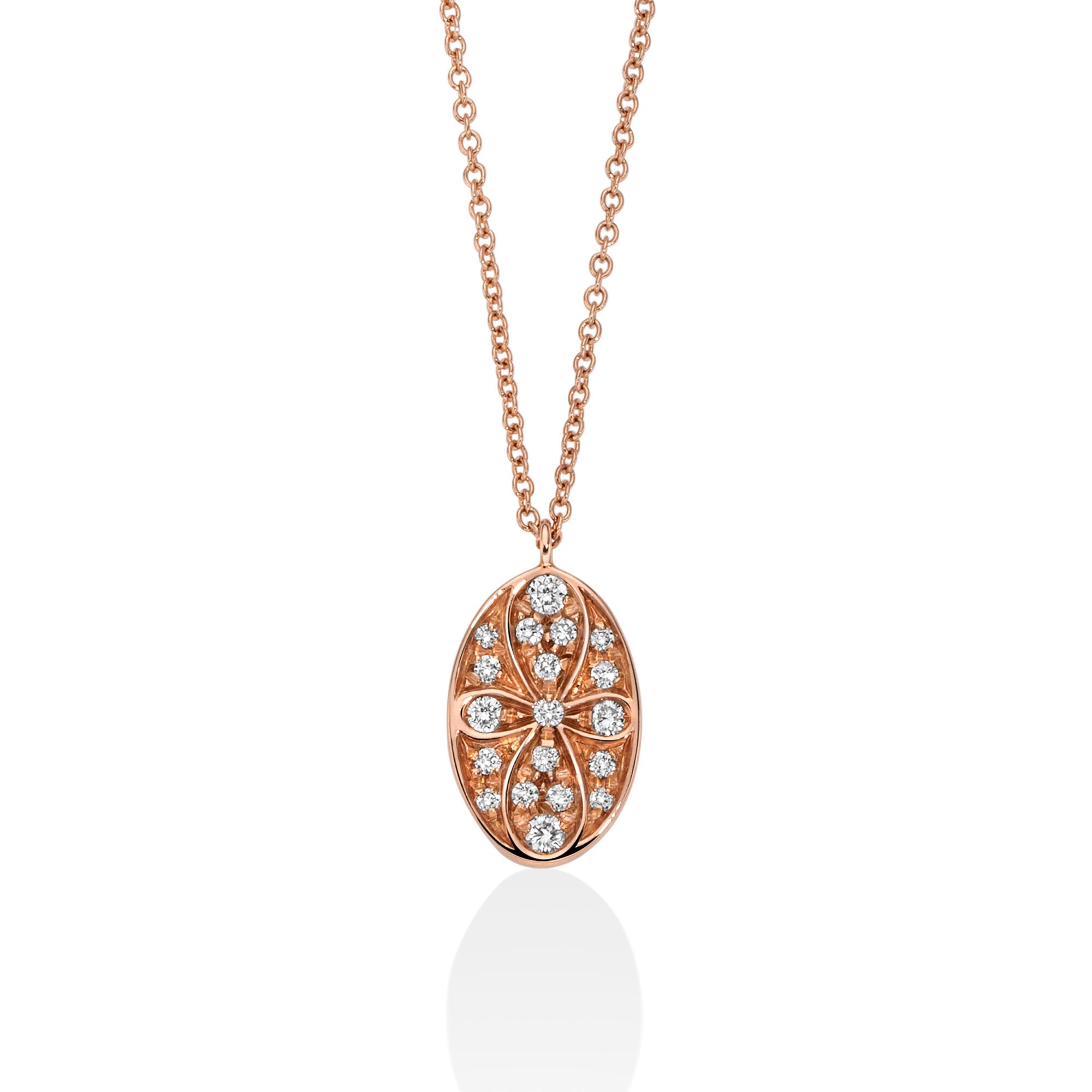 Eleva la tua collezione di gioielli con le creazioni della collezione Sigillo. Questa Necklace girocollo montata su catena presenta al centro un ciondolo ovale inciso realizzato in oro Pink 18 kt e incastonato di diamanti bianchi.