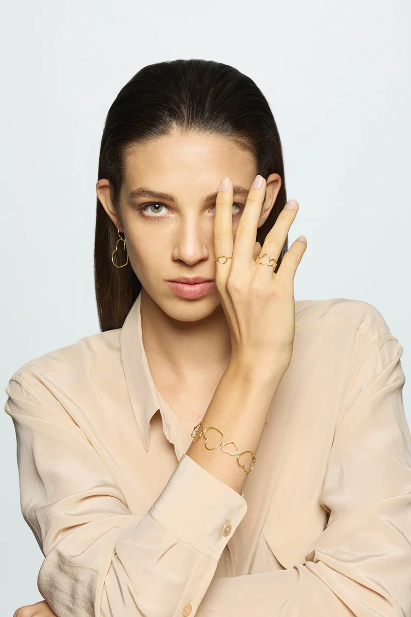 The fil rouge of the collection is the Heart, an expression of love featured on bracelets, earrings, necklaces and rings.